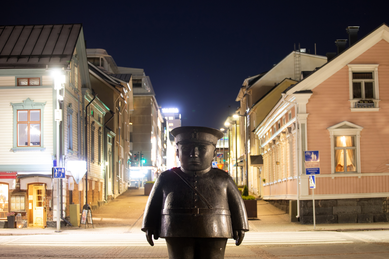 Oulun kauppatorilla seisova Toripolliisi-patsas on Oulun kuuluisa nähtävyys.
